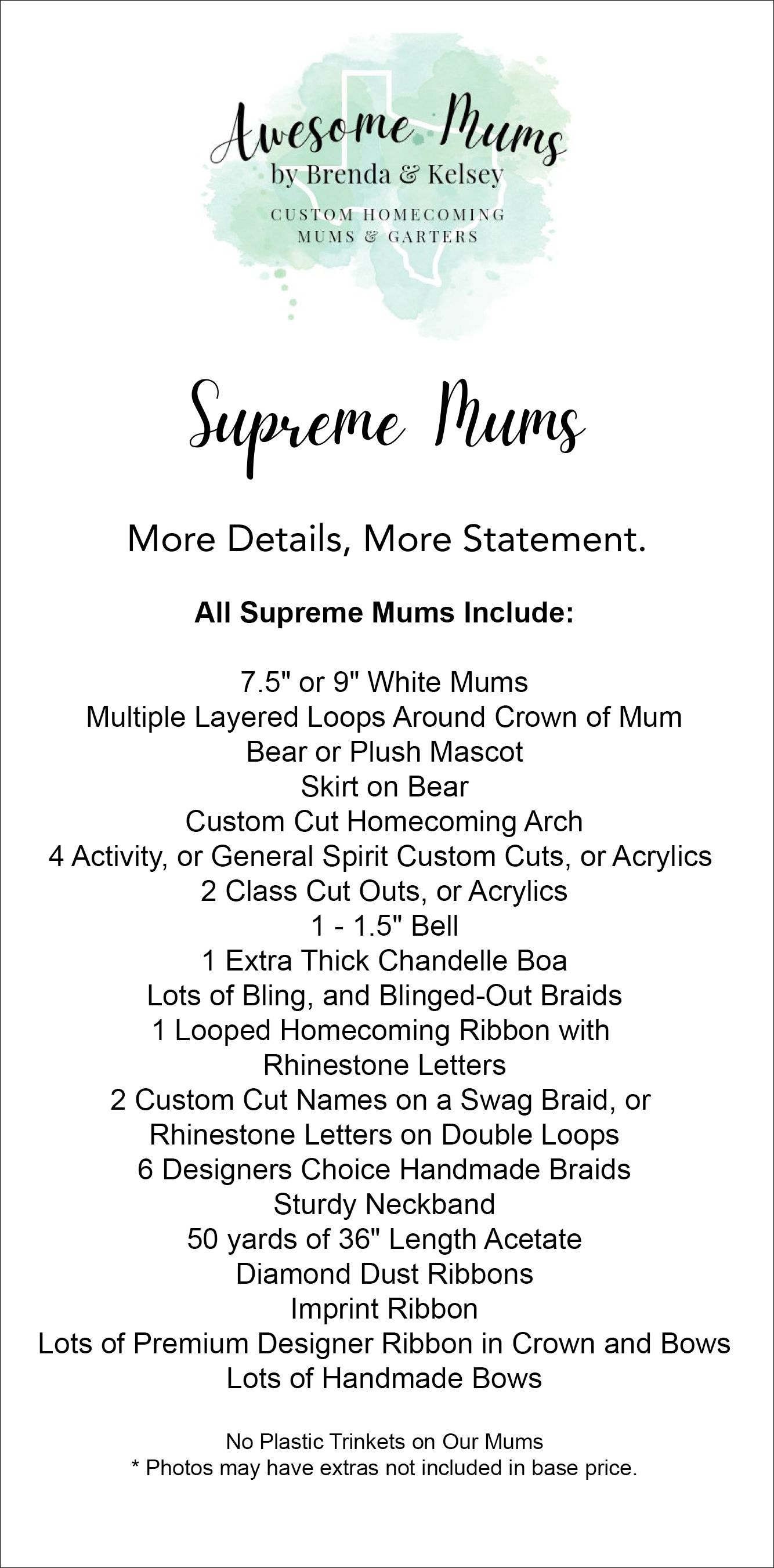 Ordering online is easy. Build your custom mum by making choices from the order column. When finished, place your item in your online cart, make your payment, or continue shopping. You can also put multiple mums or garters in your cart. If you have questions about extra items or packages look at our BRAIDS/ADD-ONS drop-down menu on our website, or call us. We're happy to answer questions.